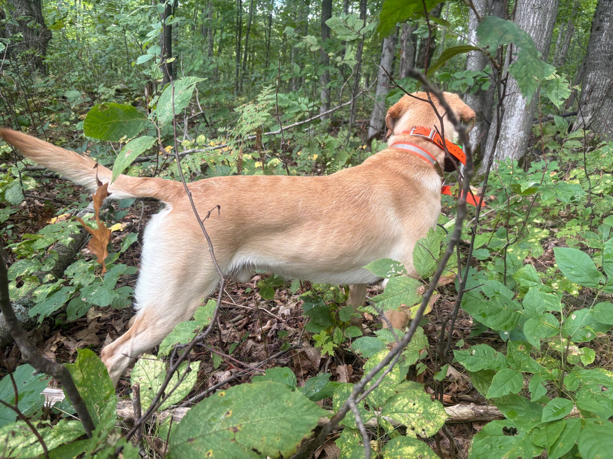 NOMI Guide Services is built around a small kennel of hard‑charging, steady pointing labs specifically suited to Northern Michigan’s rugged woods, thick cover, and cold water. Their natural pointing ability locks birds in place in dense grouse and woodcock habitat, while their strong retrieving drive and dense coats make them reliable on late‑season waterfowl in frigid conditions. Calm, controlled in close quarters, yet powerful on long retrieves, these dogs are tailor‑made for our local terrain.